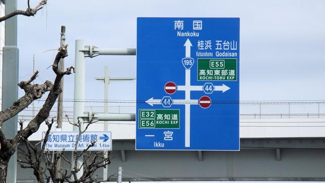 高知中央インターチェンジの標識群