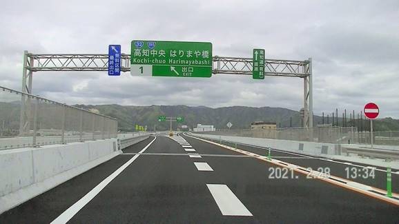 高知中央インターチェンジまであと1`です。この下に国道32号南国バイパスが通過しています。
