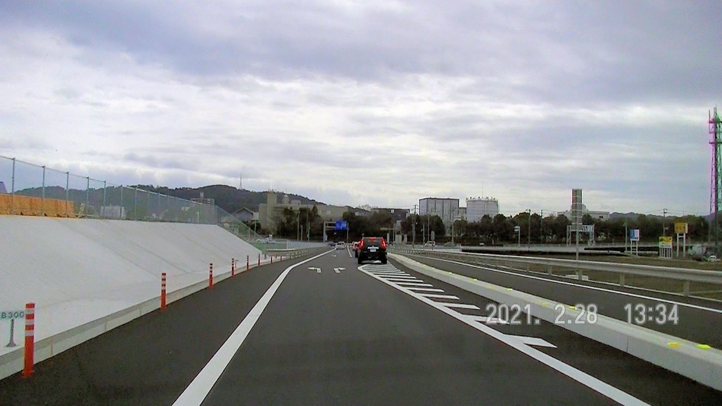 イオンモール行きの車がほとんどでしょうかね。左側の盛り上がっている場所は災害避難のための施設です。